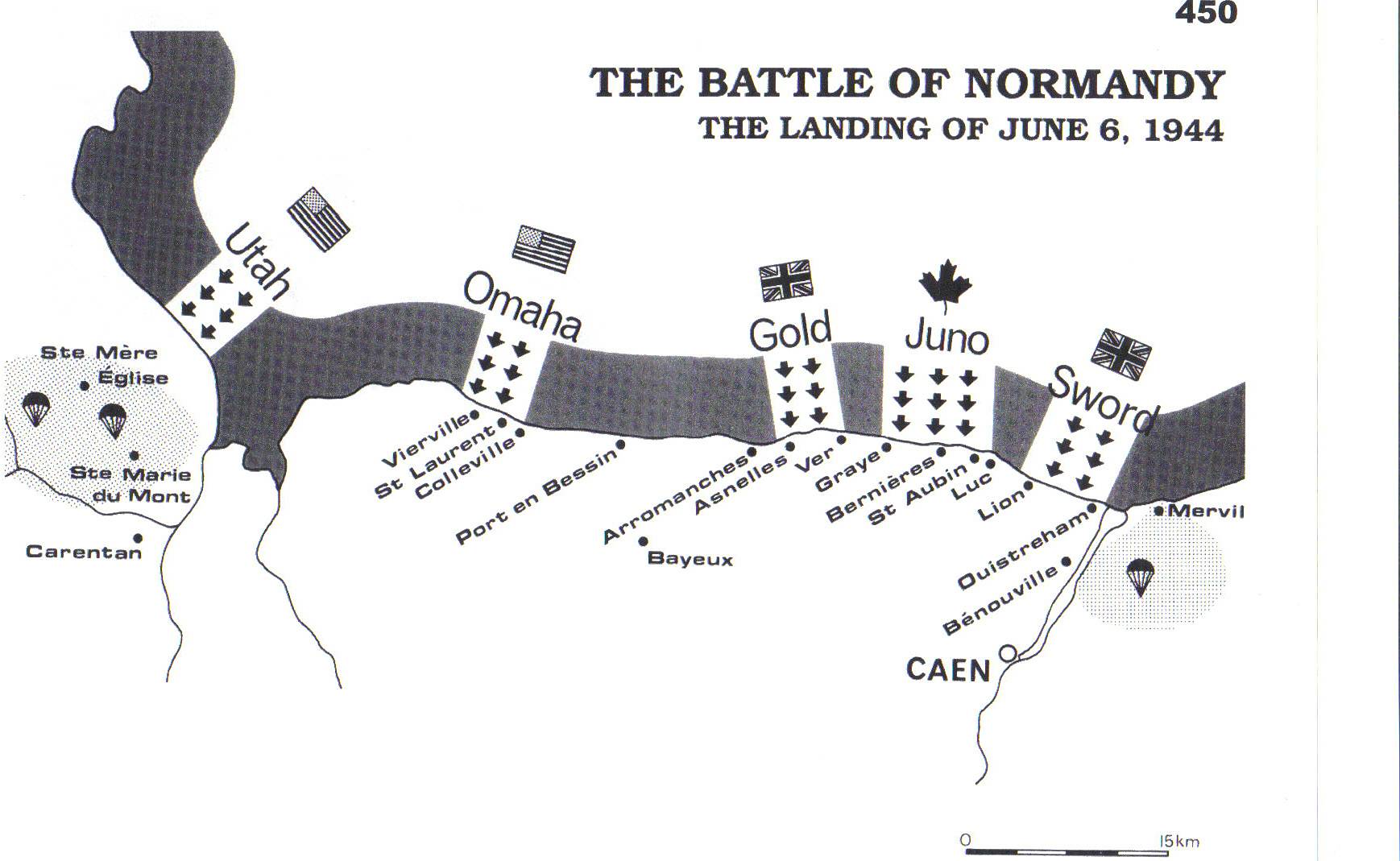 the British and Canadians landed on Gold, Juno and Sword beaches.