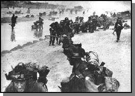 ![]() British Troops come ashore on Sword Beach June 6, 1944 ![]() Prime Minister Churchill inspects American Troops before embarkation - 1944 ![]() First temporary cemetary in Normandy - workers are German P.O.W's |